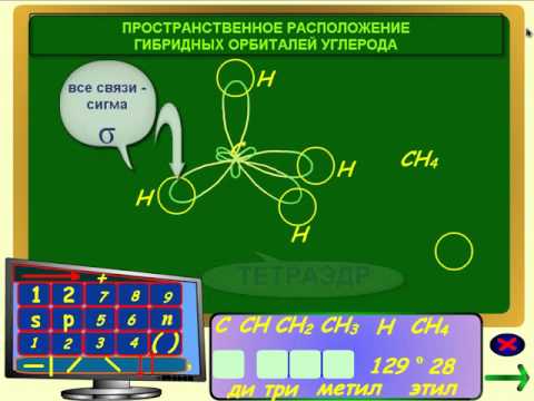 - пространственное расположение орбиталей углерода;